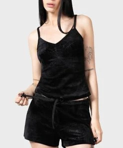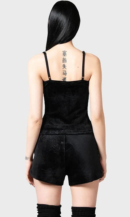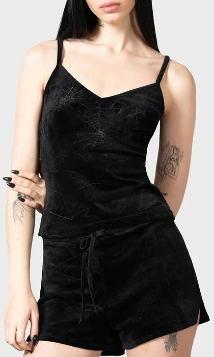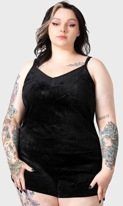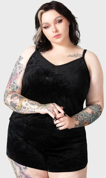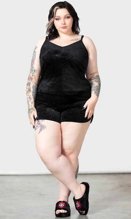 Feel like you can sleep for days when you wear the super soft ‘Eternal’ sleeper vest. Complete with stretch velour, embossed spiderweb print and adjustable straps. Perfect for slumber parties, movie marathons or a quick nap that’ll leave you wondering what year it is.