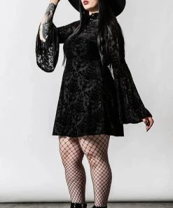 The night is young and full of mystery. Bewitch the ballroom and leave ’em wanting more in the ‘Lost Kingdom’ lace-up dress. Crafted using a burnout velvet fabric and structured in all the right places for a flawless fit. Killstar have pulled out all the stops – finished with a dramatic high neckline, lace-up detailing and long bell sleeves. A captivating gothic statement piece designed for you to dance from dusk til’ dawn.