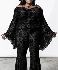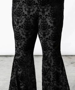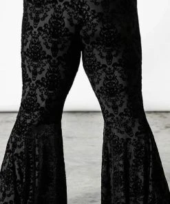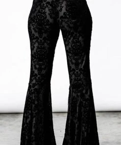 As a feather with no sound, she floats above the ground. Fall under the spell of the ‘Lucifuge’ bell bottoms – in the softest burnout velvet for superior comfort and fit. Complete with an elastic waistline and with extra-wide flare. As always – extra long; so ideal for platforms & heels! Exudes style whilst channeling a nostalgic touch; perfect for any occasion!