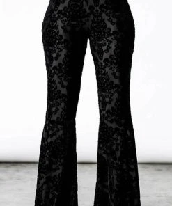 As a feather with no sound, she floats above the ground. Fall under the spell of the ‘Lucifuge’ bell bottoms – in the softest burnout velvet for superior comfort and fit. Complete with an elastic waistline and with extra-wide flare. As always – extra long; so ideal for platforms & heels! Exudes style whilst channeling a nostalgic touch; perfect for any occasion!