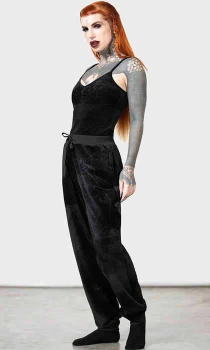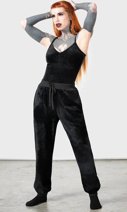 Super chill and ready to kill. Take your casual looks to the next level with the effortlessly cool Arachno Rest joggers; featuring cuffed legs, super soft velour and a deadly black on black web detail. These joggers will have you ready to go from the cruising the streets, to snoozing in your sheets.