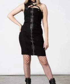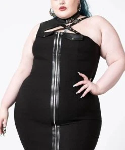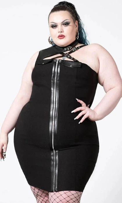 Put the fun in fun-eral with the ‘Mercy Me’ midi dress. Channeling an urban vibe with its figure-hugging fit, constructed of woven stretch fabric for ultimate feel and comfort. With a high neck, front zip and statement strap across the chest. Fits like a glove – purrfect for date night, parties or just your daily/nightly adventures.