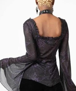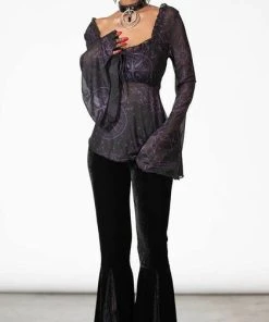 – Flowing bell sleeves.