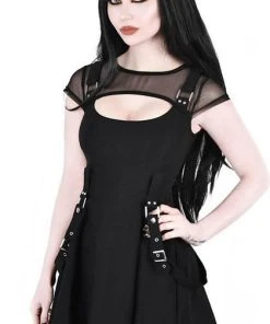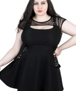 Are you ready to get obsessed? The ‘Kounter Kulture’ skater dress will tick all your boxes; constructed of super stretch woven-fabric for a flattering fit – with a fine mesh yoke, rounded neckline, and cap sleeves. A statement keyhole to the chest, belt loops, buckles, and detachable straps – as well as generously flared skirt. Easy to dress up or down depending on your mood/moon.