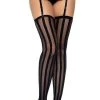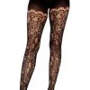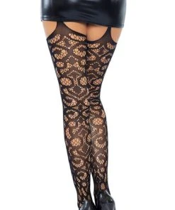 Take your hosiery game to the next level with the Gia scroll lace stockings by Leg Avenue. This striking look features an attached garter belt for comfortable wear and versatile styling. Panty not included.