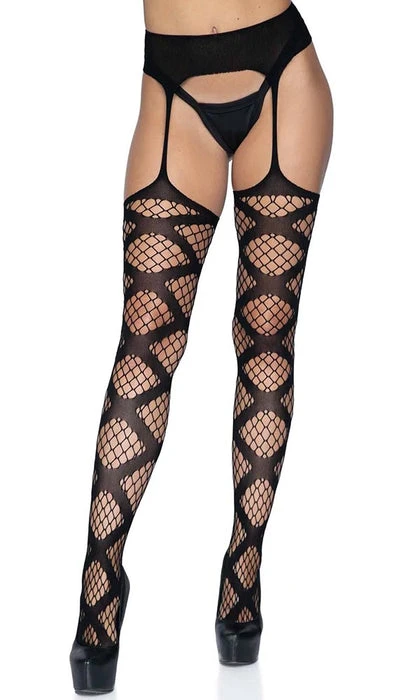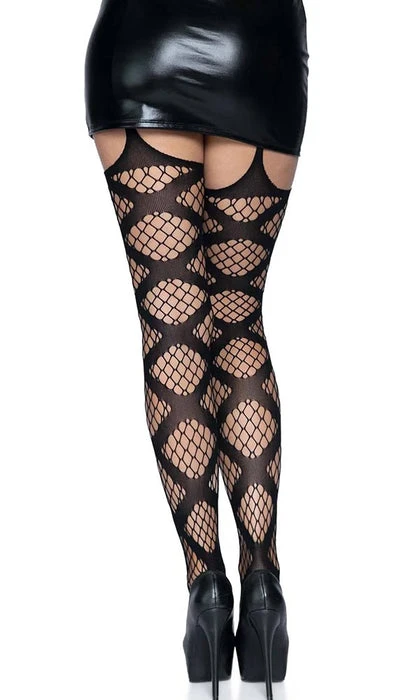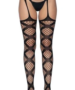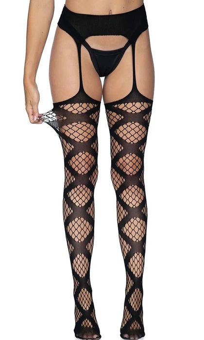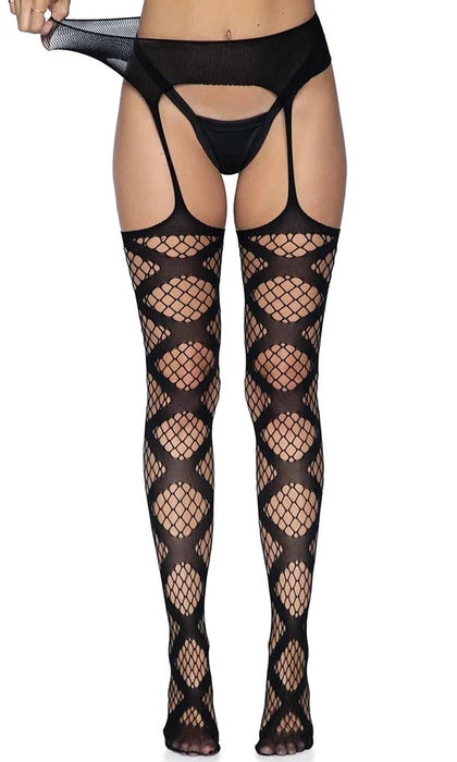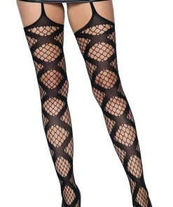 Step out in the ultra-sexy Arabella garter belt fishnet stockings by Leg Avenue and have all eyes on you. The perfect mix of hot lingerie and classic hosiery, the stunning faux wrap detail and attached opaque garter belt of these thigh high stockings is guaranteed to turn heads. Pair with a sexy dress or a black skirt for a extraordinary date night look.