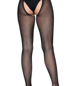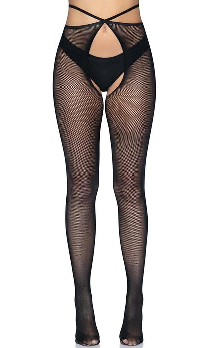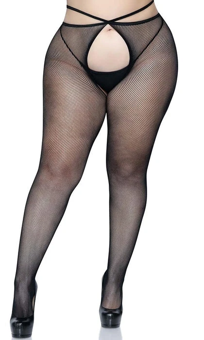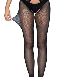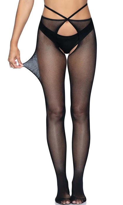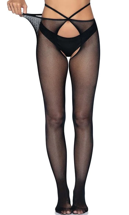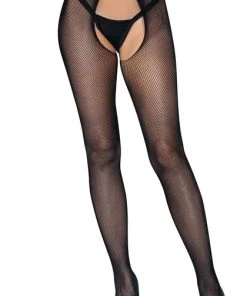 Pairing stylish fashion details and sexy lingerie looks with classic fishnet tights, the Olivia crotchless pantyhose are sure to turn heads. The strappy waist and comfort stretch micro net create a crotchless lingerie look that’s as gorgeous as it is comfortable. Transition effortlessly from day to night looks with these sexy micro fishnet stockings