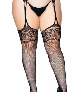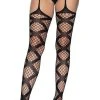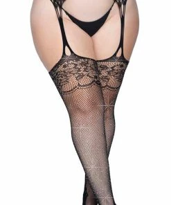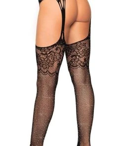 Featuring glamorous rhinestones and feminine floral lace, the Yana Fishnet Stockings with Garter Belt by Leg Avenue is an eye-catching hosiery piece sure to catch your eye. These stockings come with an attached garter belt. Pair these with your favorite sexy lingerie set or a skirt and get ready to be a showstopper!