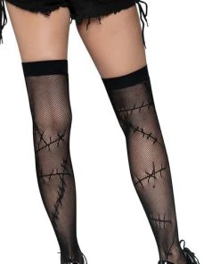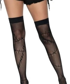 Its alive! Get into the spooky season with the playful Stitched Up fishnet thigh highs by Leg Avenue. Whether you create a fun couples costume look as Frankenstein’s wife or getting spooky solo as the Bride of Frankenstein, these stockings are sure to take your Halloween costume to the next level!