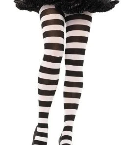Classic women’s tights with a fun twist: The Darby striped opaque tights by Leg Avenue feature ultra-soft nylon fabric with a solid top and comfortable stretch waistband. The wide stripes make these pantyhose the perfection addition to fall outfits and Halloween costume looks.