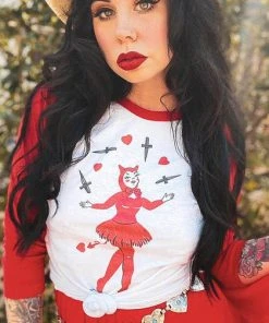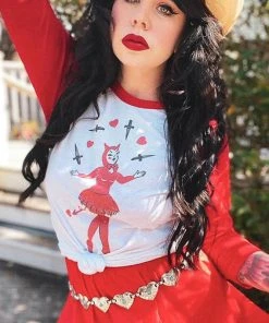 Conjure some vintage style in this beautiful raglan tee. It’s lightweight, soft White and Red colour features a spooky design and looks incredible paired with a pencil skirt or capris!