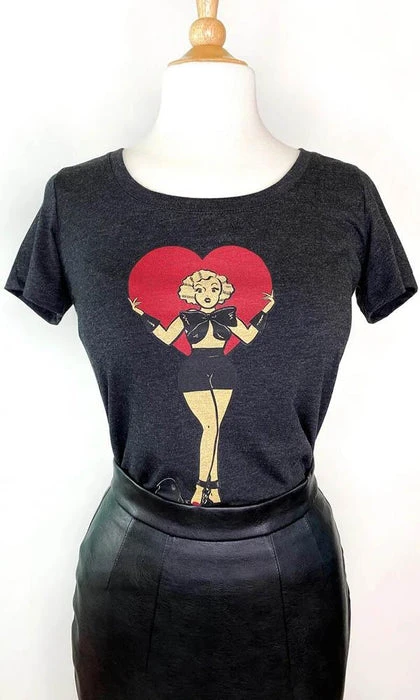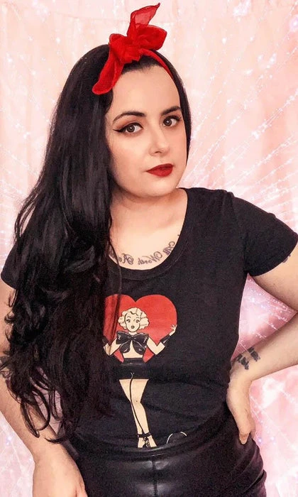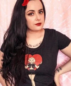 Conjure some vintage style in this beautiful fitted tee. It’s lightweight, soft Black colour features a Romantic design and looks incredible paired with a pencil skirt or capris!