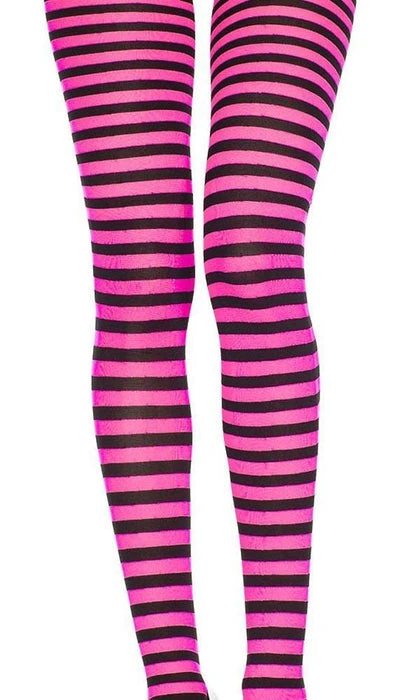 These Black and Hot Pink Tights from Music Legs are the perfect addition to your next Costume, Cosplay, or Gothic Punk Outfit. Featuring small horizontal stripes and bright, bold colours, these opaque tights are not for faint-hearted!