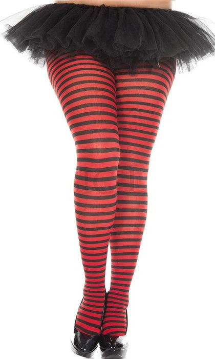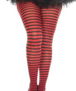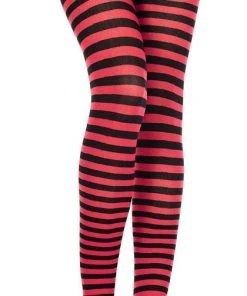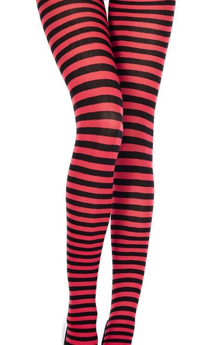 These Black and Red Tights from Music Legs are the perfect addition to your next Costume, Cosplay, or Gothic Punk Outfit. Featuring small horizontal stripes and bright, bold colours, these opaque tights are not for faint-hearted!