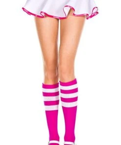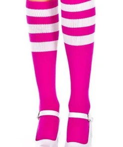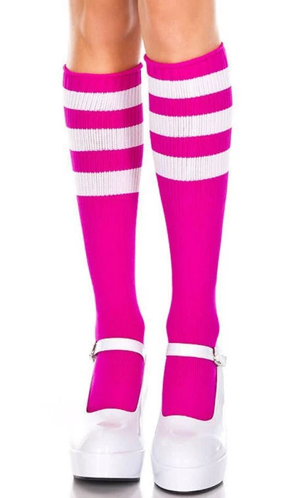 These Fuchsia and White Triple Stripe Knee High Socks from Music Legs literally go with everything. Stomp the damn yard!
