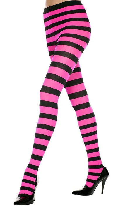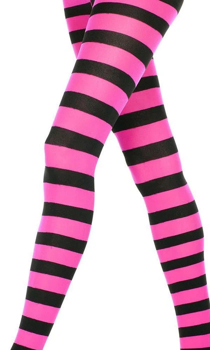 These Black and Pink Tights from Music Legs are the perfect addition to your Cyber Goth, Rave, or Halloween Outfit. Featuring horizontal stripes and bright, bold colours, these opaque tights are not for faint-hearted!