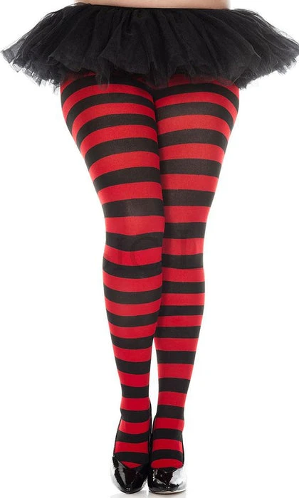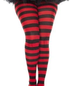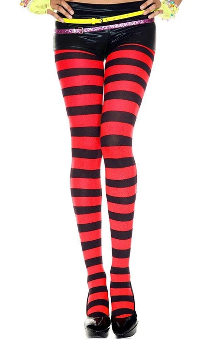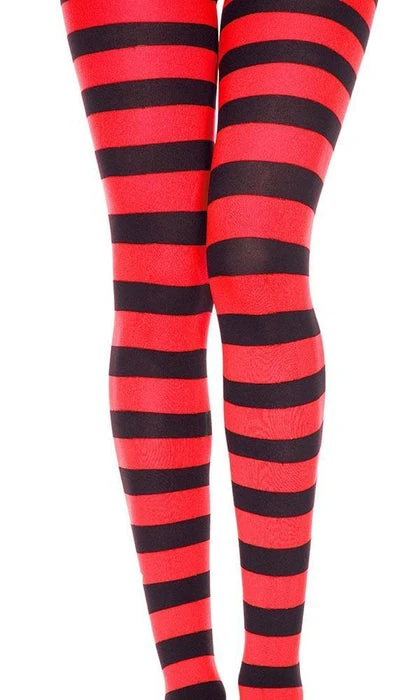 These Black and Red Tights from Music Legs are the perfect addition to your next Costume, Cosplay, or Gothic Punk Outfit. Featuring horizontal stripes and bright, bold colours, these opaque tights are not for faint-hearted!