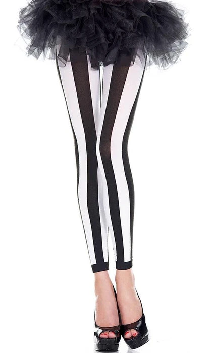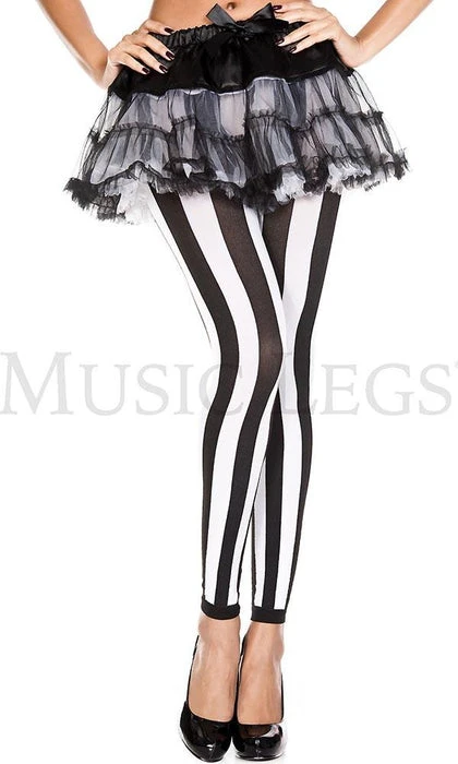 Accentuate your curves in these opaque leggings featuring a high stretchy waist, and an allover black and white striped design.