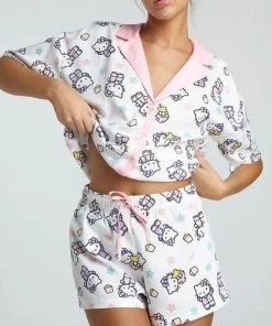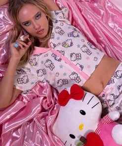 Live your most kawaii life in this incredibly sweet sleep set! Featuring adorable matching top and bottoms, covered in Hello Kitty motifs!