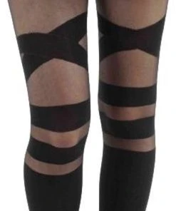 Make a statement with these tights featuring an opaque-design to high-thigh, then has a sheer-look with a v strap look on the front.