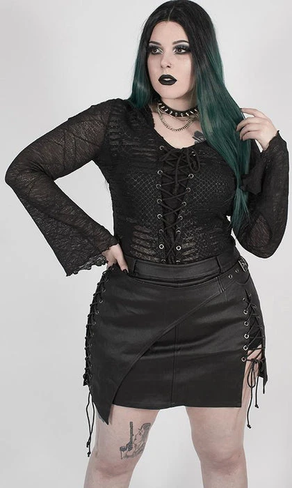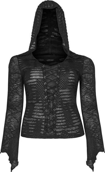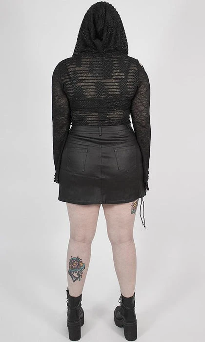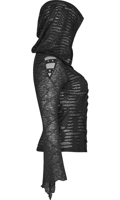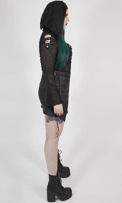 Turn heads in this stunning and flattering Petrichor Hooded Top. Pair with a skirt, fishnets and boots for the ultimate edgy goth outfit.