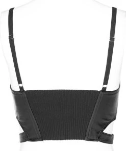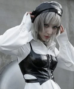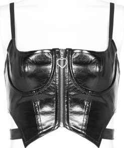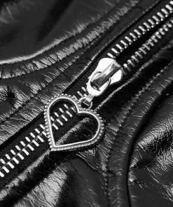 Add some Cyber Mystery to your dark wardrobe with the Heartbeat Crop Top! It features PU Leather glossy fabric, hollowed out sides and cute heart shaped zipper pull! Wear it over a fishnet long sleeved top, pleated skirt and statement boots for a grungy punk vibe.