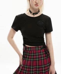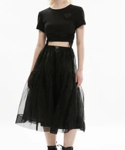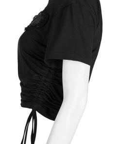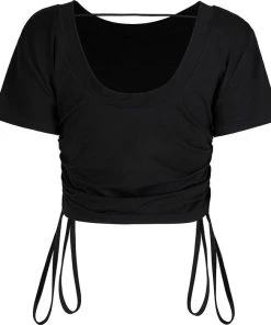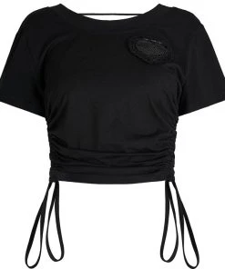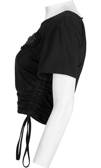 This cute crop is a must have staple in any wardrobe. Featuring draw cord on both sides and a beaded heart embellishment, pair it with a short skirt for a edgy casual look.