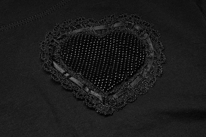 – Draw cord lace sewn around the heart shape.