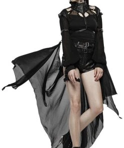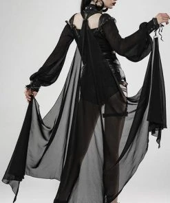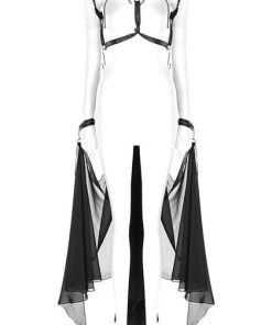 This absolutely stunning bat cloak is the greatest invention ever. With a sexy choker style harness and strap detailing over the shoulder blades and a stunning sheer material attached at the spine and the cuffs!