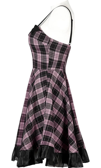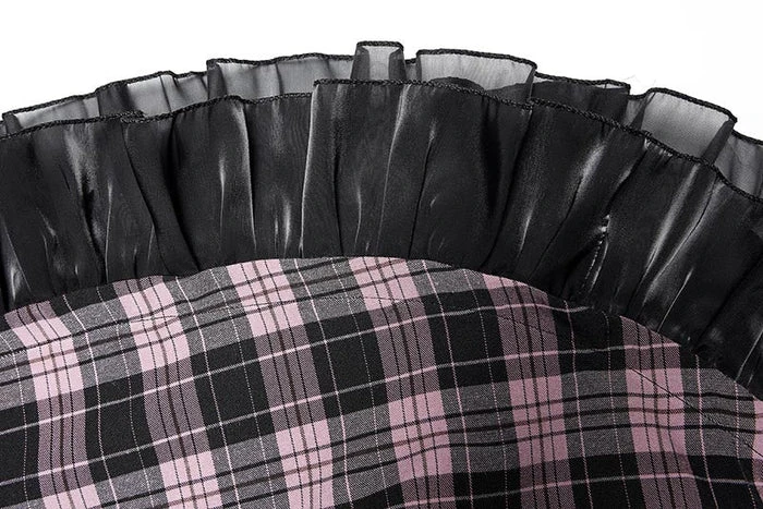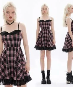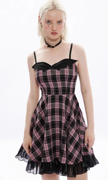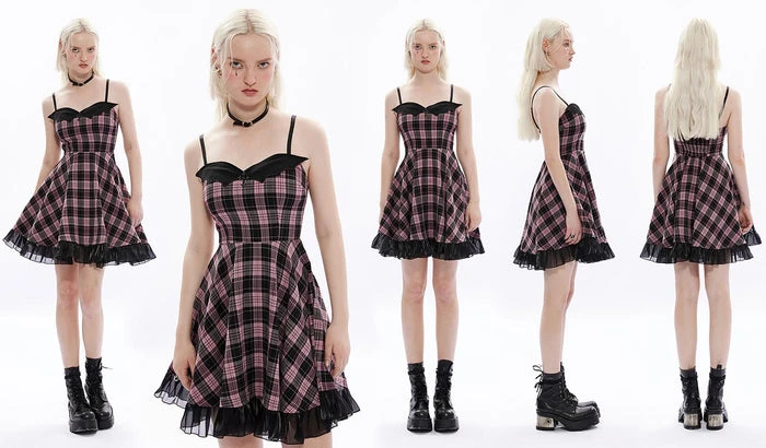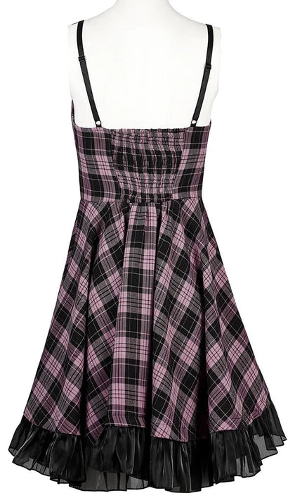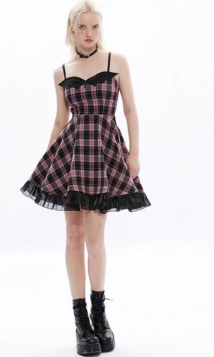 Become a cute creature of the night in this beautiful short dress! This adorable strappy dress has organza lace at hem and bat wing detailing on the front of the dress! Pair this stunning dress with some fishnets and boots for a pastel goth look!