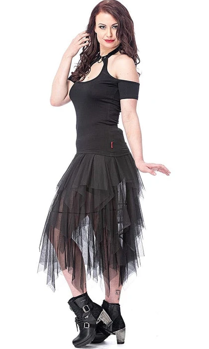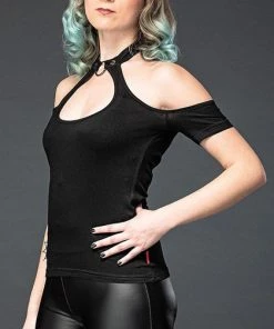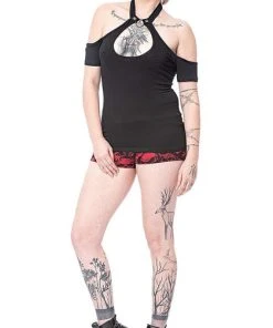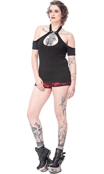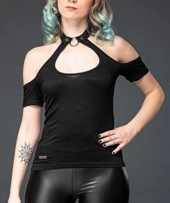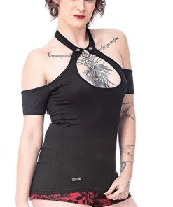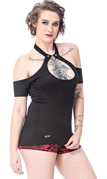 Feeling Nefarious? Well this top is perfect for you! Featuring a super cute Keyhole cut-out with an o-ring choker attachment and cold shoulder sleeves what more could you want? Pair this super hot top with a tulle skirt or bondage pants for a perfect goth look!