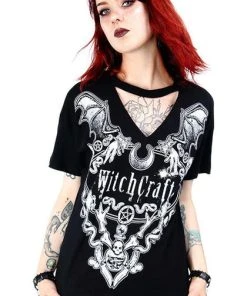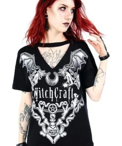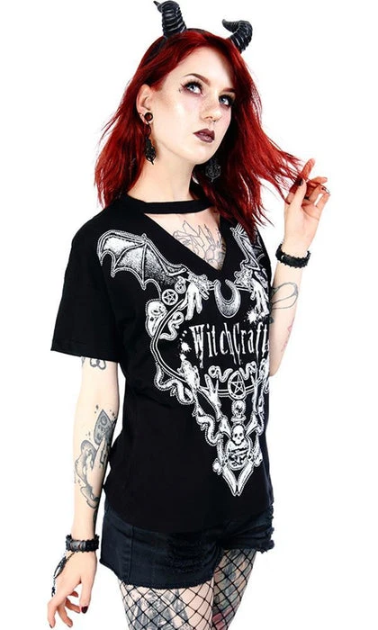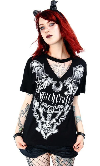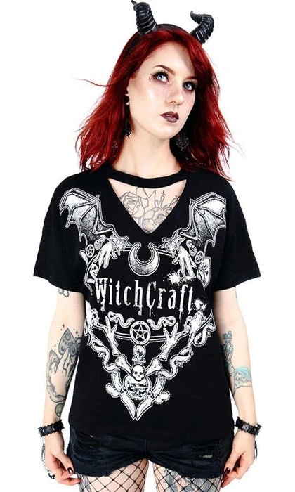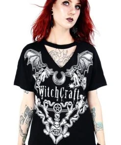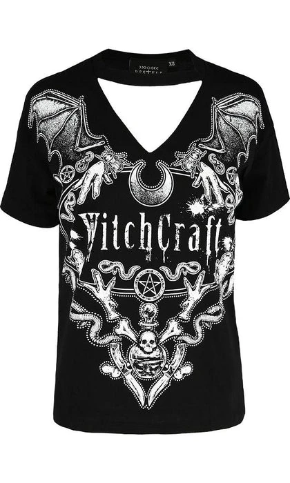 The Witchcraft Choker Top by Restyle is a little bit cute and a little bit badass. This top is made from a soft black cotton and features a slightly oversized design, unique V-neck cut out, and choker-style neckline with a contrasting white print on black background. Perfect for casual witchy days!