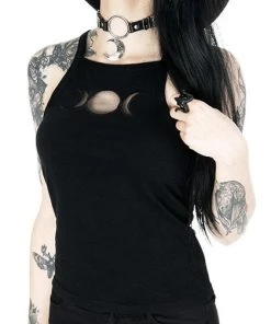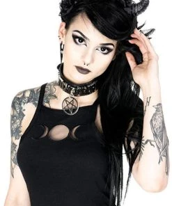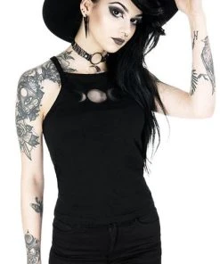 Become your inner goddess – multiplied by three! This black gothic top has no print pattern, just pure dark design. Featuring mesh cut-out shaped as moon phases. This design is both classic and unique at the same time.