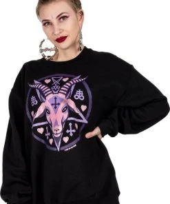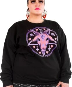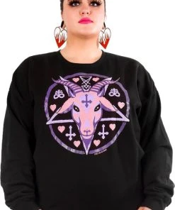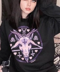 Pledge your allegiance to Baphomet, but make it cute. Pair with distressed jeans or a skirt and boots for a cute but deadly pastel goth vibe.