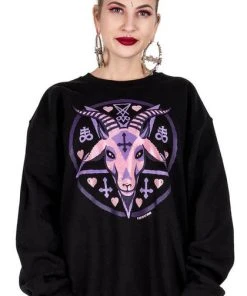 Pledge your allegiance to Baphomet, but make it cute. Pair with distressed jeans or a skirt and boots for a cute but deadly pastel goth vibe.