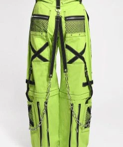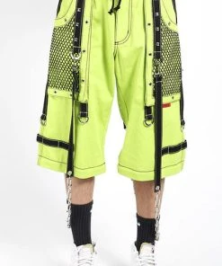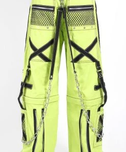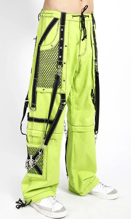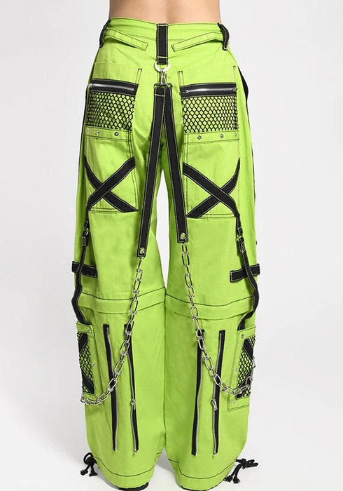 Accept no imitations! From the originator of all things DarkStreet, these lime and black studded pants zip off into shorts and feature removable chains, adjustable ankles, zippers, D-rings, and deep pockets.