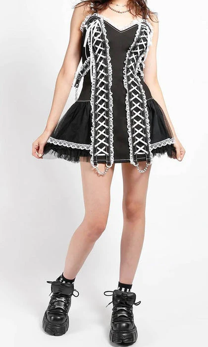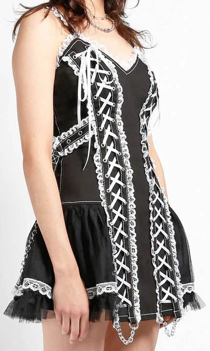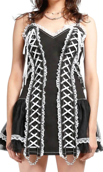 Accept no imitations! From the originator of all things DarkStreet, this Lolita Dress features Lace, Chains, Eyelets and D-rings!