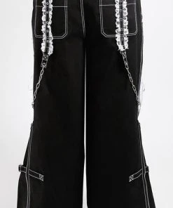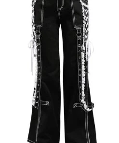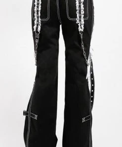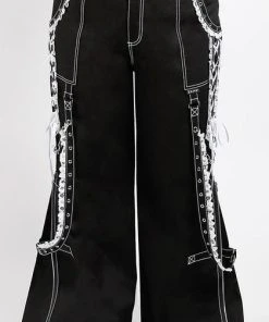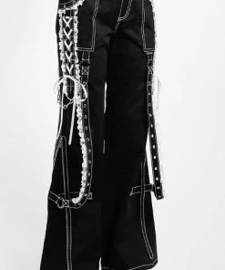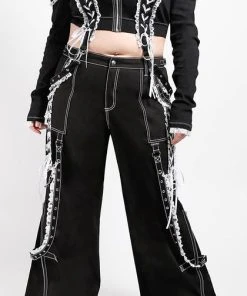 The ultimate Lolita Darkstreet Pants! Featuring monochromatic Black and White, Lace, Chains, Eyelets and D-rings!