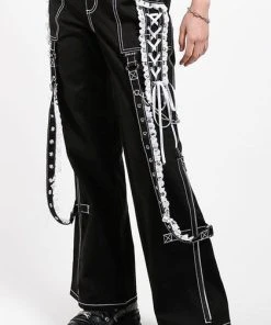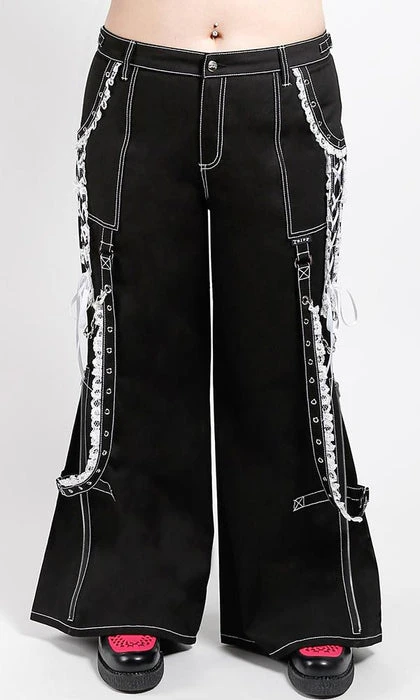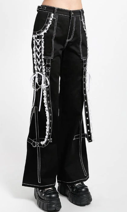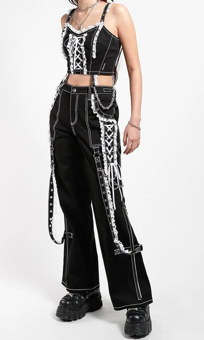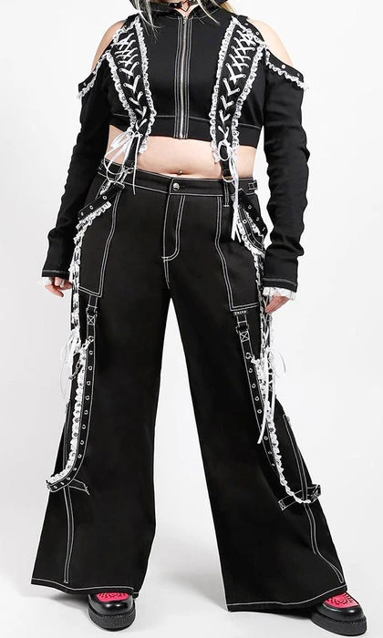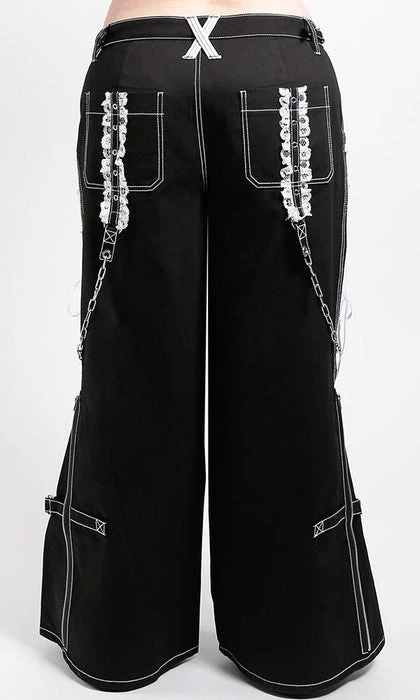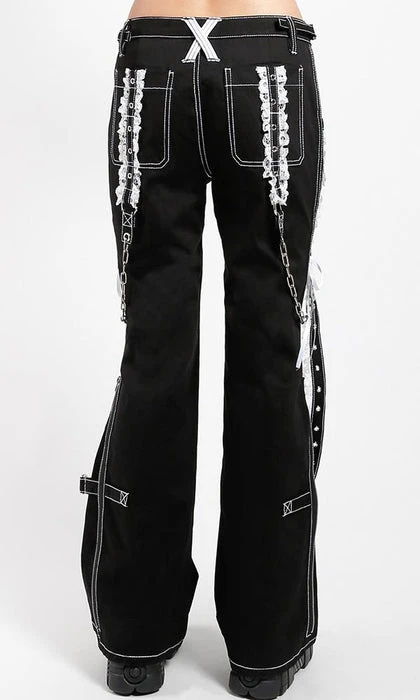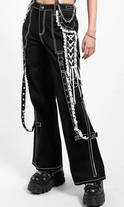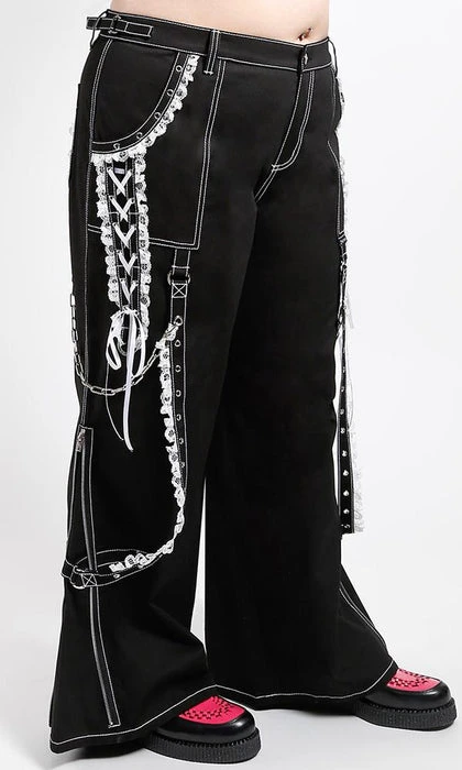 The ultimate Lolita Darkstreet Pants! Featuring monochromatic Black and White, Lace, Chains, Eyelets and D-rings!