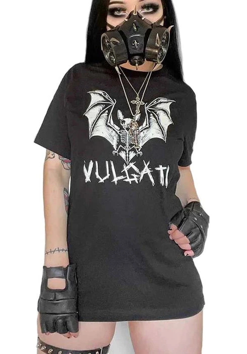 Fly off into the night sky with this super comfortable and versatile bat t-shit. Dress it up with a oversized shirt, fishnets and chunky boots, or pair it with ripped jeans, and fishnets for a casual look.