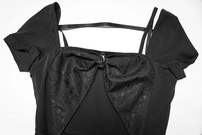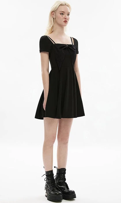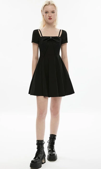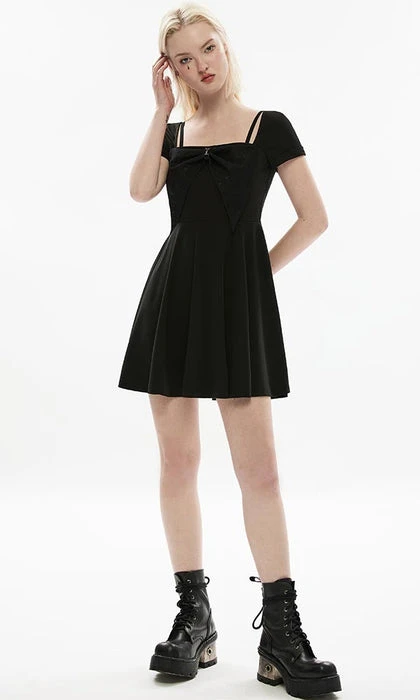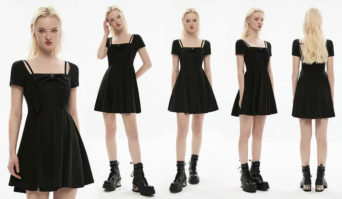 Stand out in this beautiful little black dress! This dress has large bow and strappy detailing! Pair this stunning dress with some fishnets and boots for a goth look!
