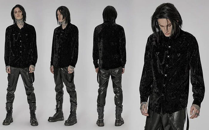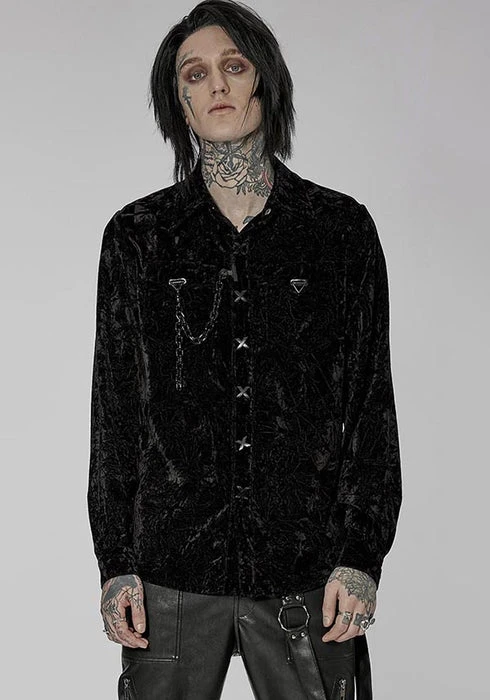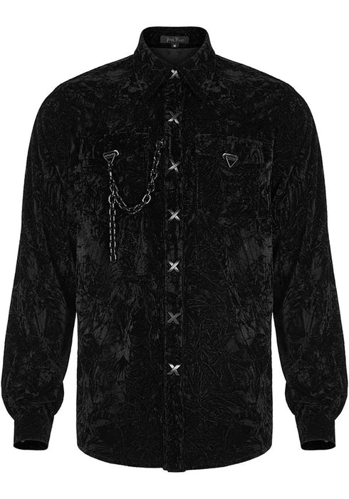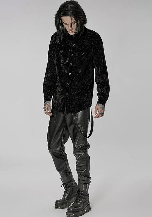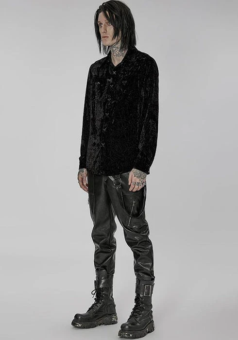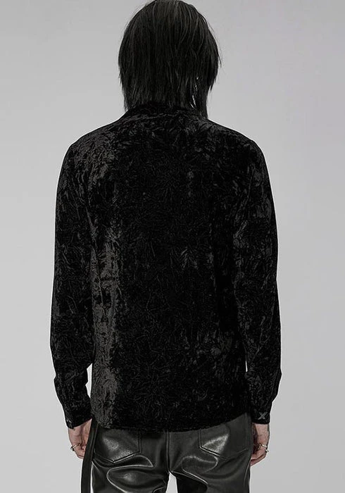 Emerge from the night in this sophisticated button-up shirt. The crushed and wrinkled effect adds a layer of charm. Pair this with some formal pants or some stomping boots for a fun outing!