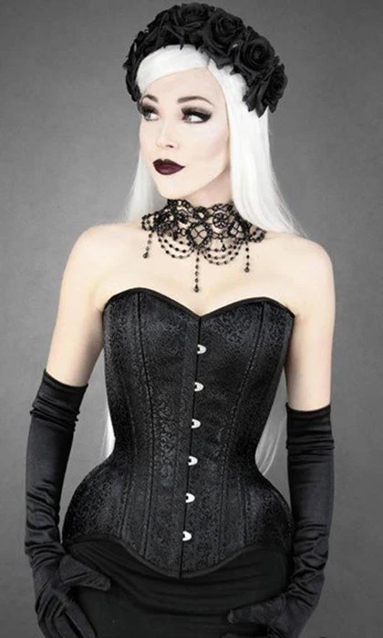 This beautiful Black Brocade Corset is a curved overbust style, suitable for tight lacing and will fit most types of silhouettes.