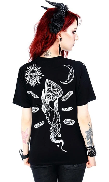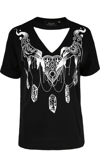 The Haunted Top by Restyle is a little bit cute and a little bit badass. This top is made from a soft black cotton and features a slightly oversized design, unique V-neck cut out, and choker-style neckline with a contrasting white print on black background. Perfect for casual witchy days!