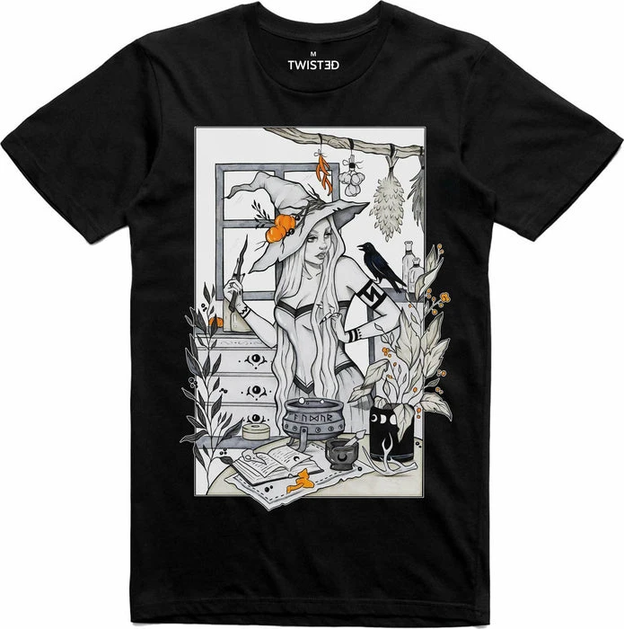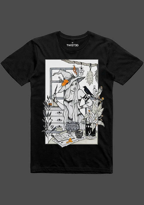 Conjure up some serious style with the Alchemist T-Shirt. Tuck into a high waisted maxi skirt and boots for a really witchy vibe.